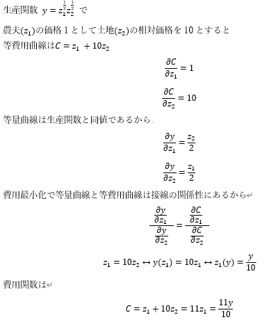 コブ=ダグラス型生産関数から費用関数を求める問題も頻出ですよね・・・?